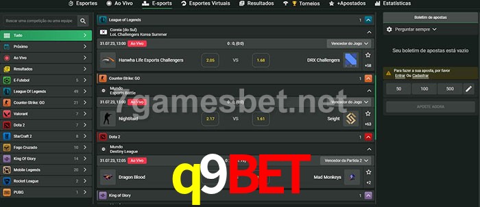 O q9bet oferece uma grande seleção de opções de apostas em e-sports com probabilidades competitivas